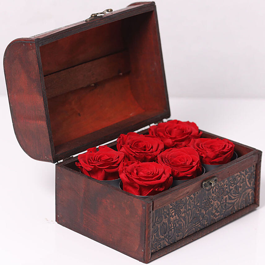 Forever Red Roses In Wooden Box