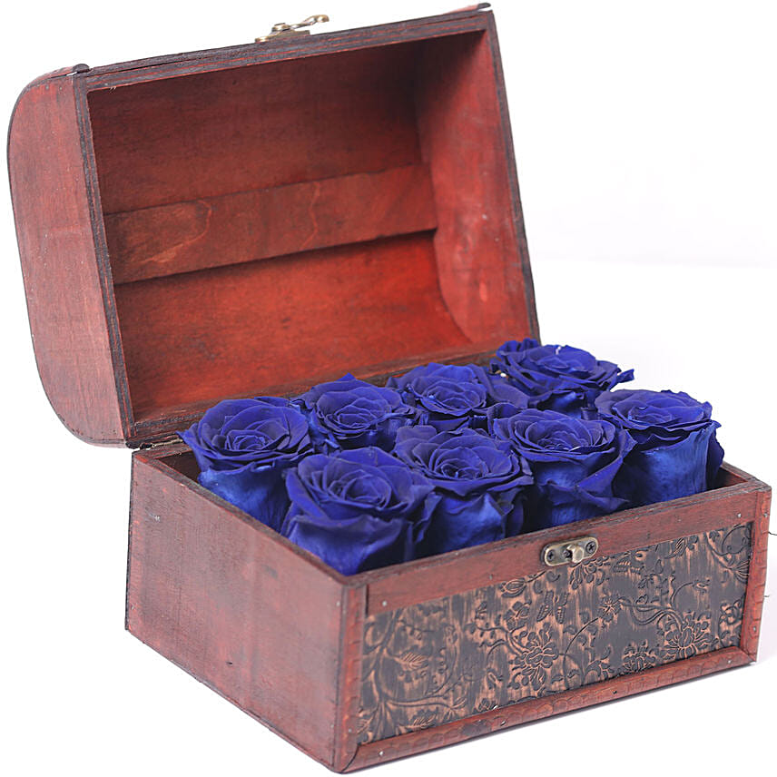 Blue Forever Roses In Wooden Box