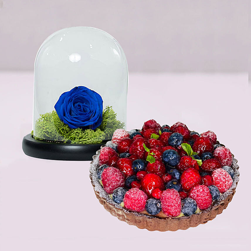 Elegant Blue Rose & Berry Tart Cake