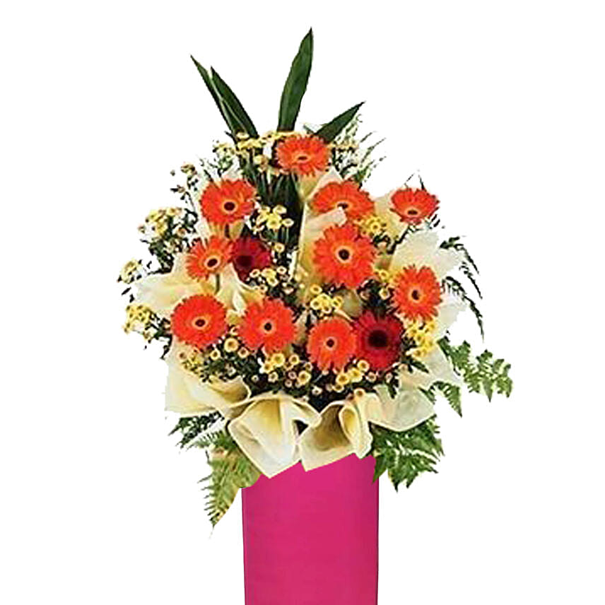 Gerberas N Baby Breath Flower Stand